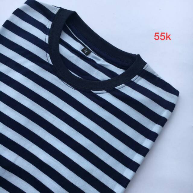Kaos Lorek Baju Garis Stripe Cowok Cewek White Strip Navy Shopee Indonesia