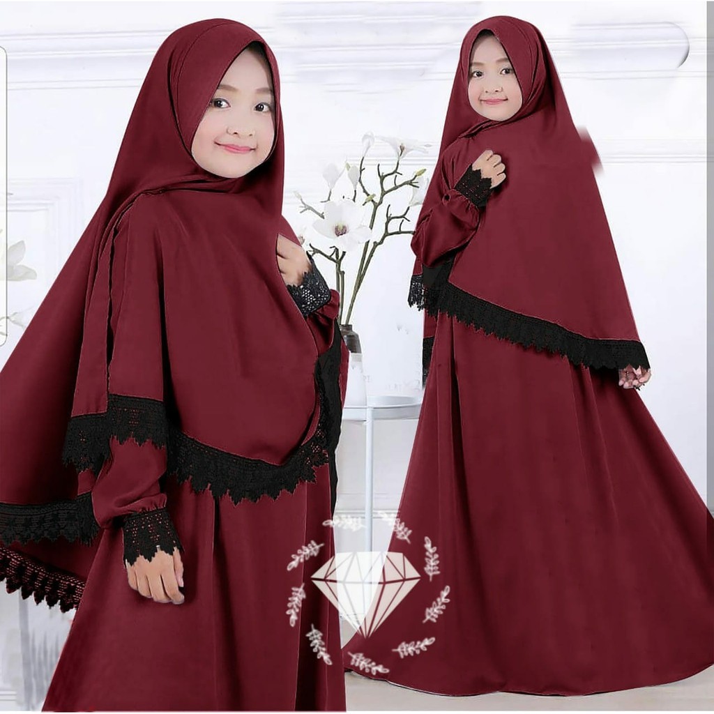 Set Gamis Anak Perempuan 1-12 tahun - Tosca Maroon - 13 - 14 thn.