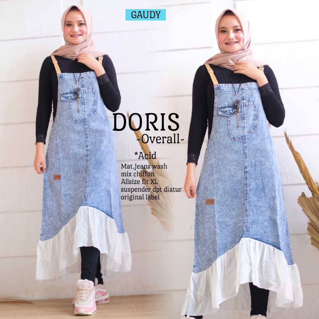 Dinda Rok Overall Bahan Jeans Allsize Fit To L Setelan Modern Wanita Muslim Terbaru 2021 Setelan
