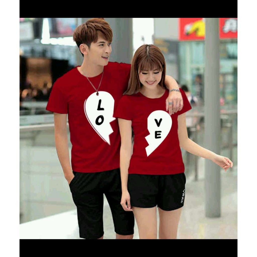 Cp Kaos Couple Baju Couple Lengan Pendek Murah Love Merah Shopee Indonesia